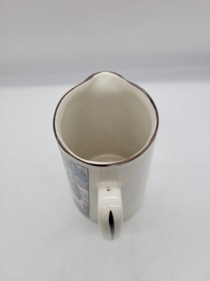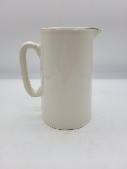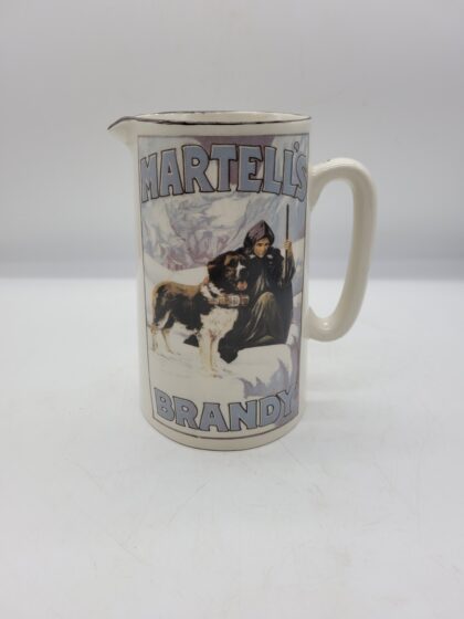 White glazed ceramic jug with applied picture and text, "Martell's Brandy".