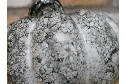 This stunning decorative pumpkin features a stone-effect finish, perfect for adding a touch of elegance to your home decor. Measuring H: 17cm, W: 21cm, D: 21cm and weighing 1.58kgs, it's an eye-catching piece for any setting.