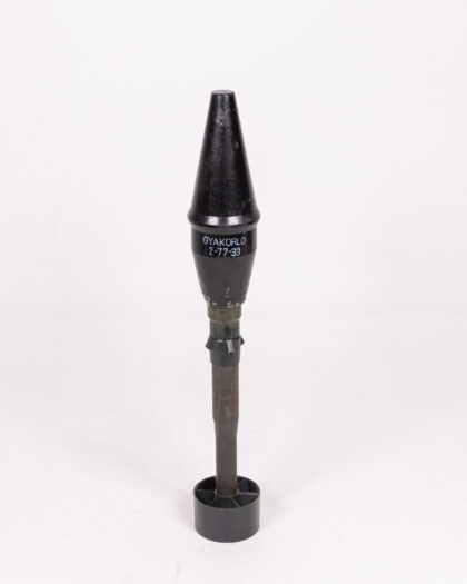 GYAKORLO 2-77-33 Vintage practice mortar round. Olive green and black, metal construction. Collectible military item for display.