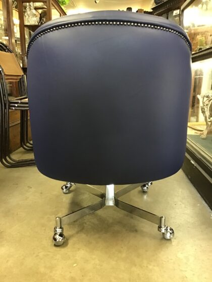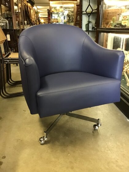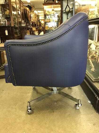 Reupholstered in blue leather, this a very smart Art Deco style French chair set on very stylish nickel-plated casters.