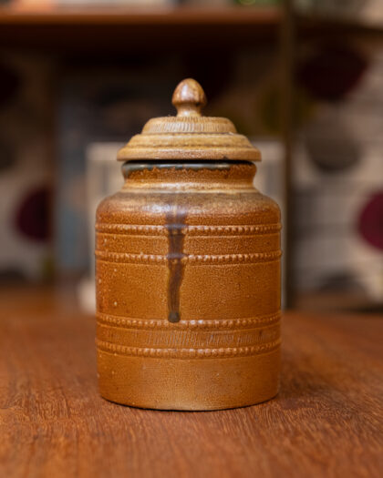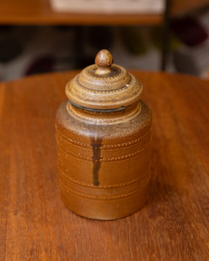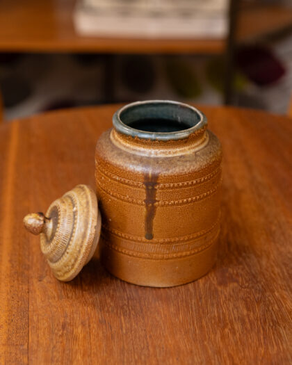 Discover a beautiful piece of mid-century modern design with this exquisite pottery storage jar from the renowned Portuguese Campos Filhos Aveiro Studio. This rare and immaculate jar offers both functionality and elegance, making it a perfect addition to any home décor.