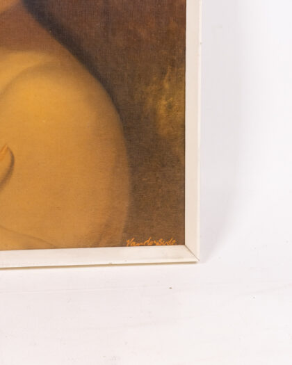 Vintage mid century 'Nina' framed print, signed Van der Sude. A beautiful portrait in a neutral frame, perfect for adding retro charm.