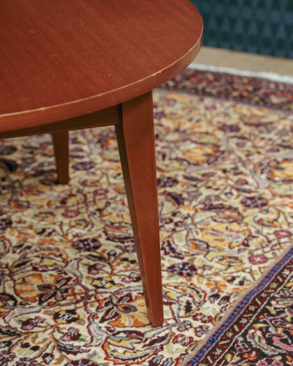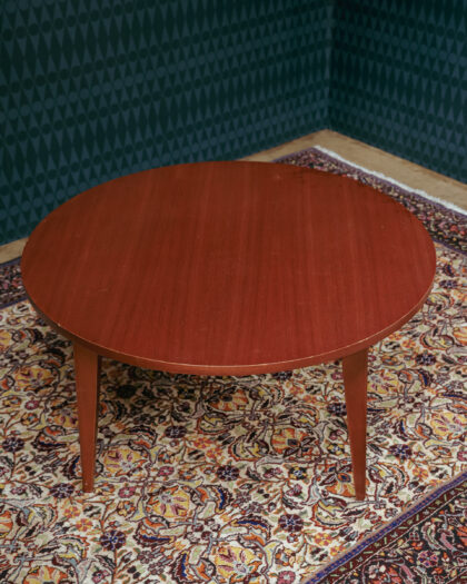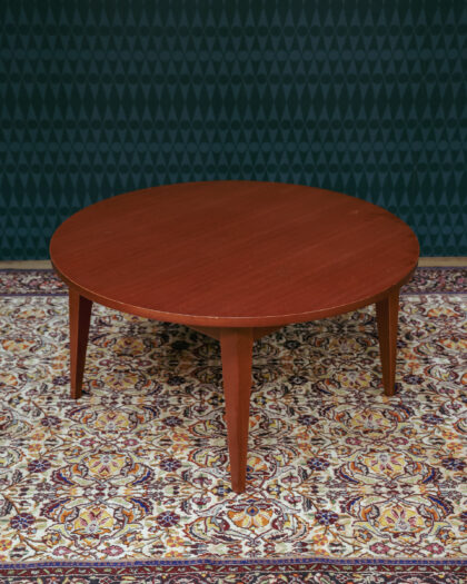 Classic Mid-Century round coffee table in warm teak. Perfect for adding vintage charm to your living room. Compact size ideal for smaller spaces.