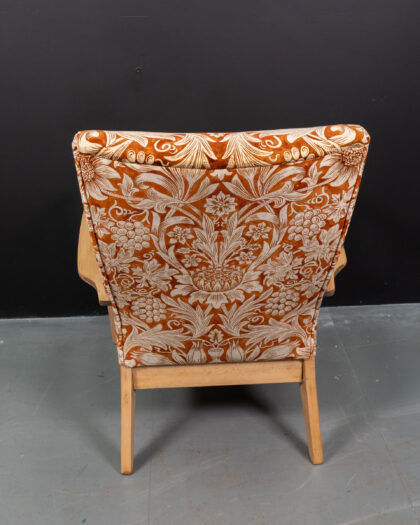 Mid-century armchair featuring a wooden frame upholstered in beautiful Morris & Co fabric. Excellent condition.