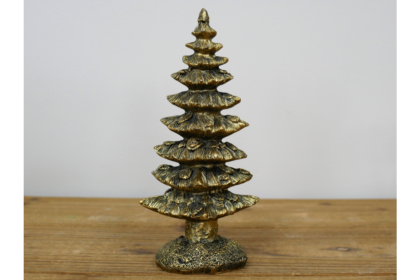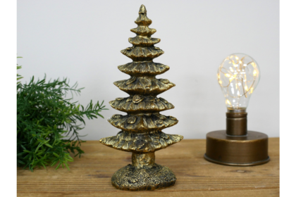 Brand new gold resin Christmas tree ornament. Intricately detailed design. H: 19cm W: 9cm D: 7cm. Perfect for the festive season.