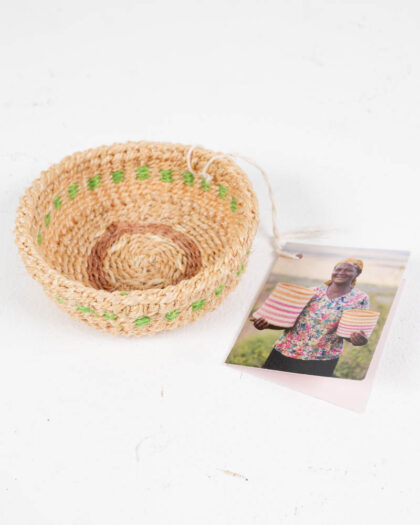 Mini Sisal Trinket Basket with Green and Brown Detailing