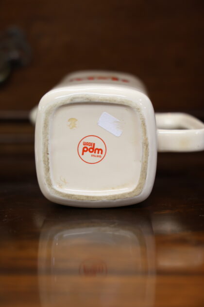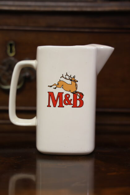 A cream ceramic bartop water jug for Mitchells and Butlers. Made by Wade and bears red backstamp to base.