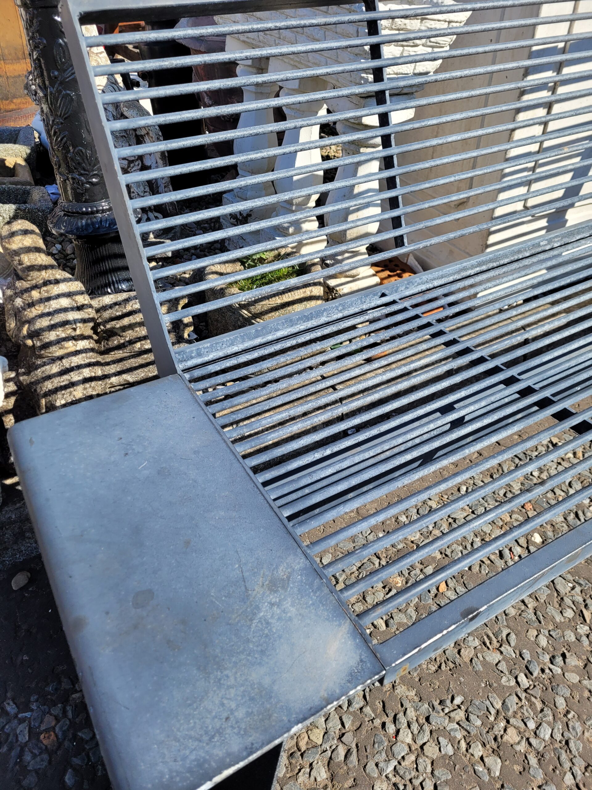 A modern metal bench, perfect for a stylish garden. Made by Spanish outdoor design company Mmcité.