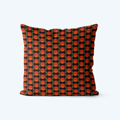 Modern Orange and Green Geometric Fabric Cushion with Seventies Print