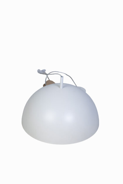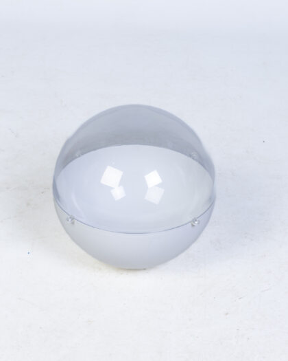 Modern sphere-shaped ceiling light fixture with transparent or opaque white dome and coloured base. Adds a modern touch to any room.