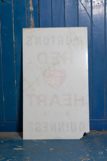 This plastic sign has a large crack across it which has been repaired from behind with clear tape.