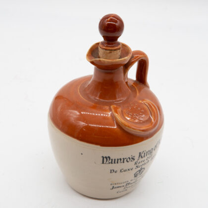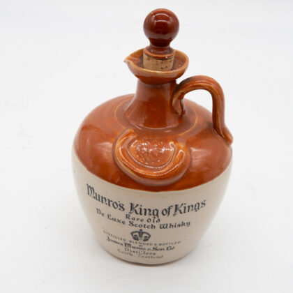 A stoneware flagon with lid for Munro's King of Kings Scotch Whisky.