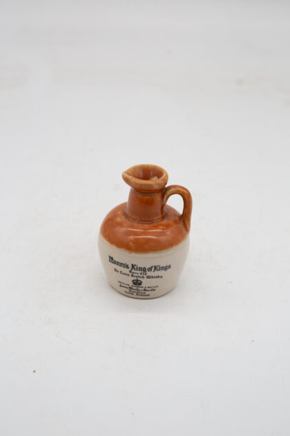 A small two-tone glazed stoneware flagon for Munro's King of Kings Rare Old De Luxe Scotch Whisky.