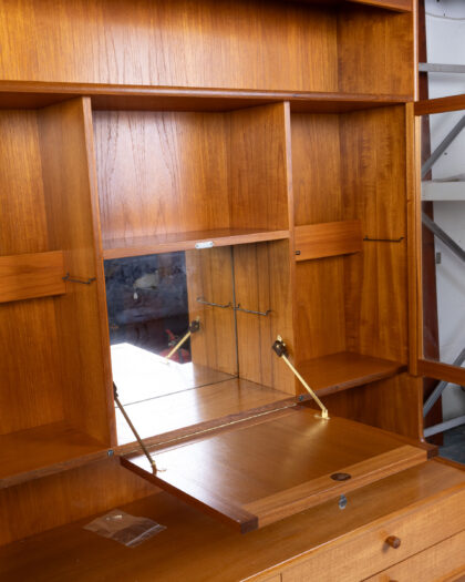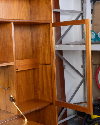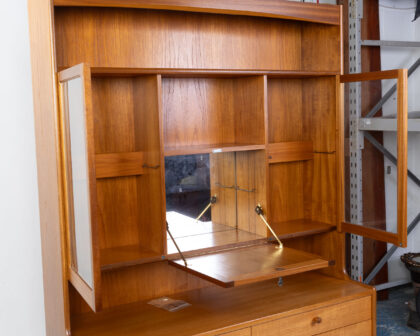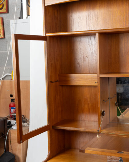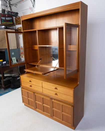 Vintage Nathan Mid-Century teak room divider. Features glass display, bureau, drawers & storage cupboards.