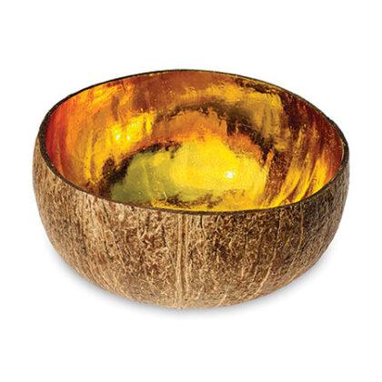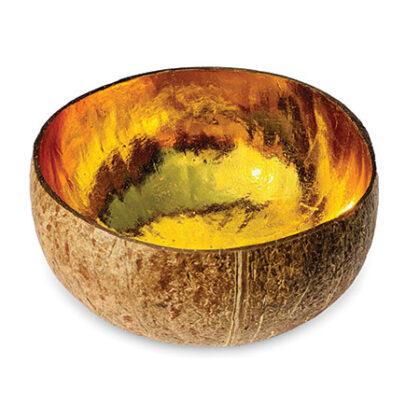 Most beach barbeques in Indonesia are fuelled by coconut shells, but craftspeople have rescued some of them to create these beautiful coconut bowls – hand-painted with a luxurious, polished gold hue and perfect for a variety of uses.