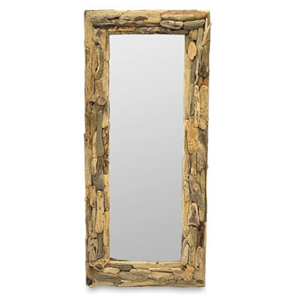 Hand crafted driftwood mirror featuring a unique wood frame. Each one is unique in appearance and may differ from the image shown. W 60 x H 140 cm.