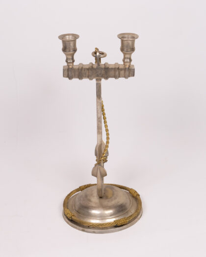 Nautical Metal Anchor Candlestick Holder with Gold Rope Detail
