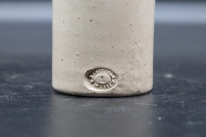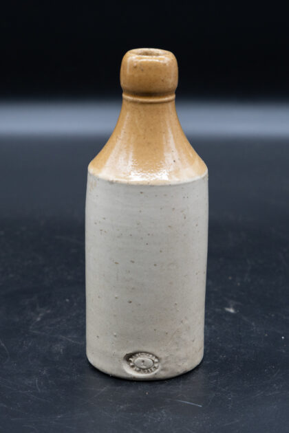 A brown two-tone stoneware bottle for Neal Carlin's Bottling Waterside Londonderry. Bears impressed Glasgow maker's mark.