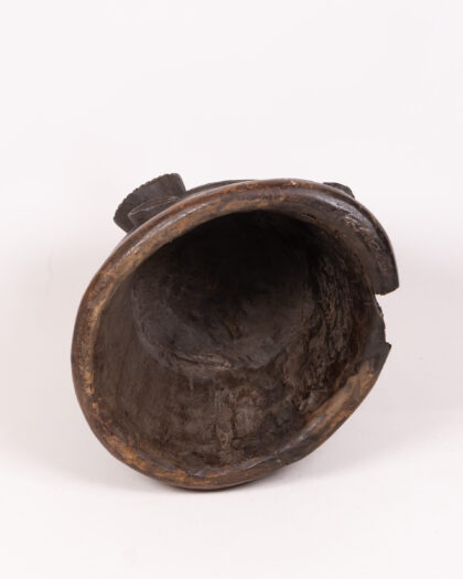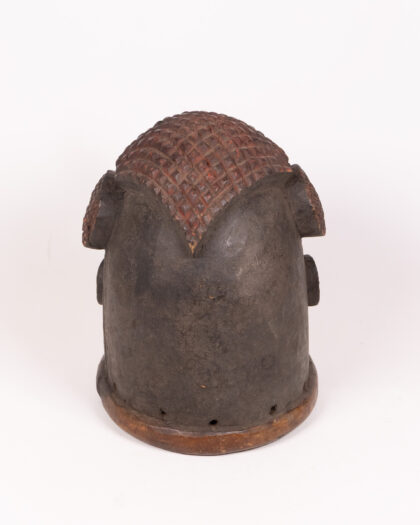 Made by the Igala people in southern Nigeria where the Niger and the Benue rivers meet the crest mask represent egu the spirit of the dead and are used during the harvest festival Hand-carved African tribal mask featuring a dark finish, patterned headdress, and carved facial features. Great display piece, showing some wear and age.