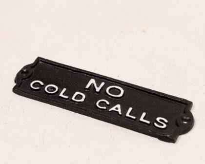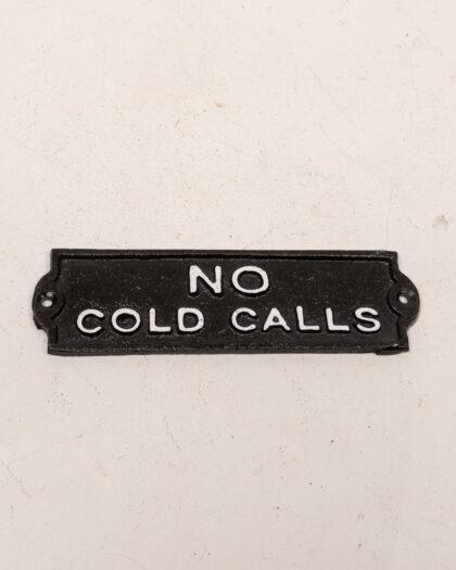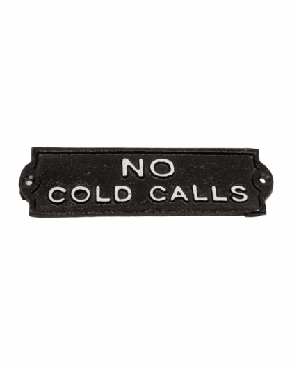 This cast iron plaque displays the message: " No Cold Calls". Finished in handpainted black with raised white lettering, this sign is a stylish way of ensuring that you don't get annoyed by unwelcome visitors at home, work or at the office. Comes with predrilled holes which make it simple to hang on a wall, door, or gate of your choice.