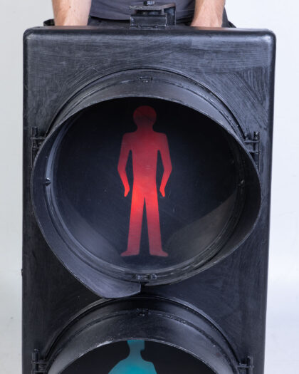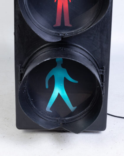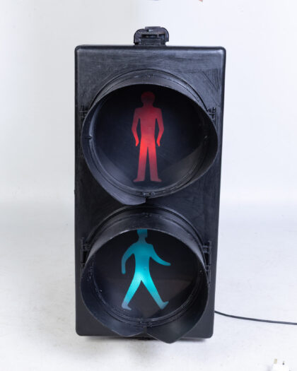 Pedestrian traffic light with red and green illuminated figures. Great quirky decor item for adding an industrial look to any room.