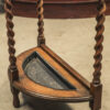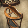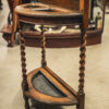 An Edwardian hall stand with barley twist legs and storage space for umbrellas and walking sticks.