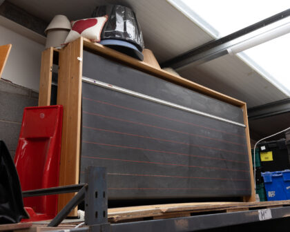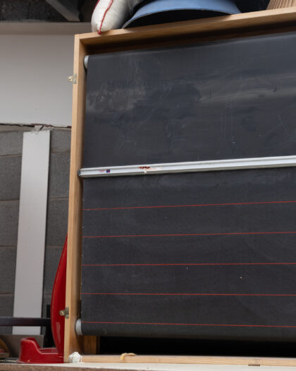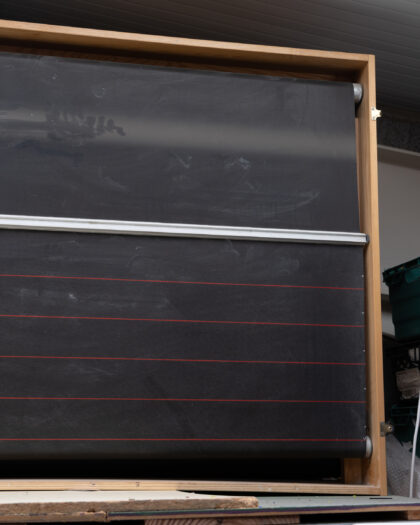 Old school rotating boards, great for any teaching environment, restaurants or your office. 9ft x 3.5ft Black with a red ruled line