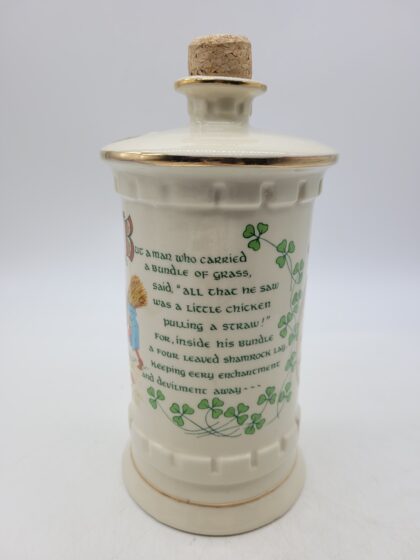 A ceramic bottle for Old Fitzgerald Bourbon Whiskey 'Irish Charm' from 1977.
