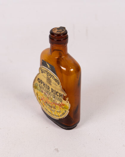 Vintage Burgoyne's Ophir Rich Kangaroo Brand bottle, an Australian wine producer, featuring the kangaroo logo. Ideal for display.