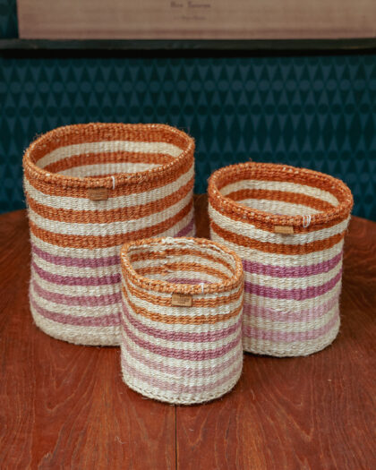 Boasting horizontal stripes of nu orange, purple pop and vintage pink stripe, our SAFIRI range of colourful baskets are woven in three different sizes for use all over the home. These colourful sisal baskets make beautiful home storage and desk tidies, toy baskets and bathroom baskets - and they can be used as both small and large planters for all your favourite houseplants.