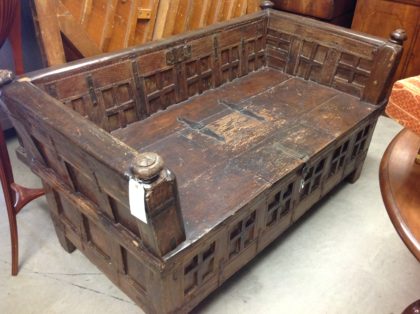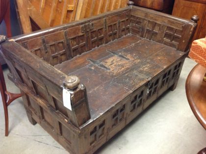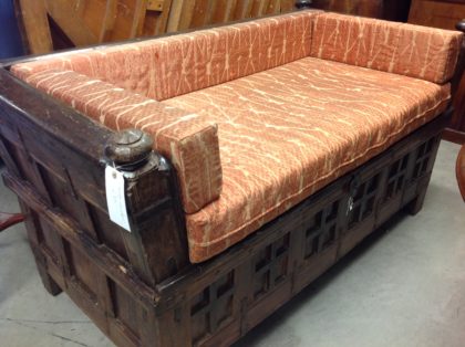 Substantial oriental couch with safe storage compartment.