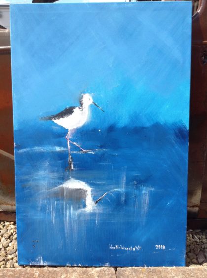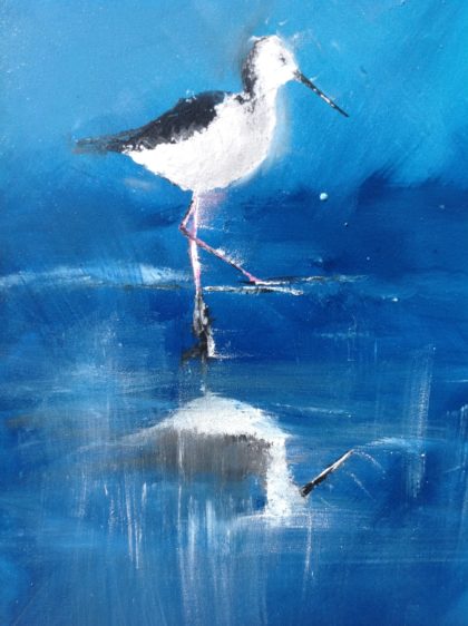 Mixed media canvas of a blackwinged stilt, by Jeff Adams