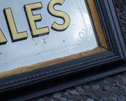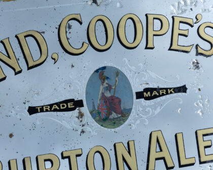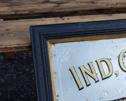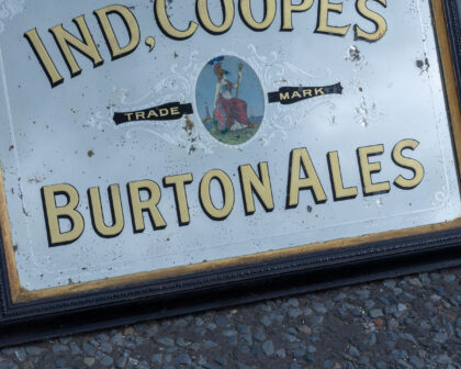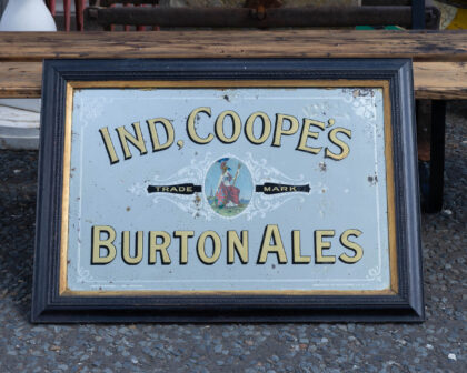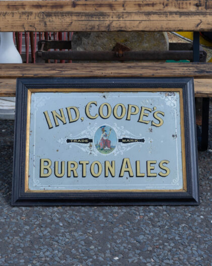 Ind. Coope's Burton Ales advertising mirror with wear adding to the vintage charm. Perfect for a home bar or study.