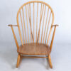 An original Ercol large Grandfather rocking chair in elm and beech with spindle back, arms and large seat. Gold label. Rare opportunity to buy this iconic chair in a blonde light colourway.