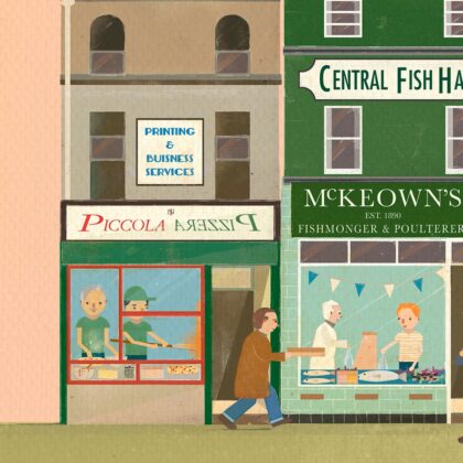 PaddyDraws A3 Print – Bangor High Street 1999 #2
