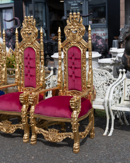 Beautiful pair of Pink Baroque style Throne Armchairs! Jazz up a any wedding or photoshoot with these bad boys!!
