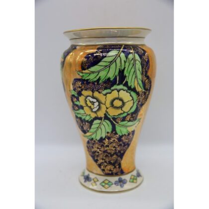 A pair of Art Deco period H & K Tunstall porcelain baluster vases decorated with flowers each raised on circular foot with black backstamp to base.