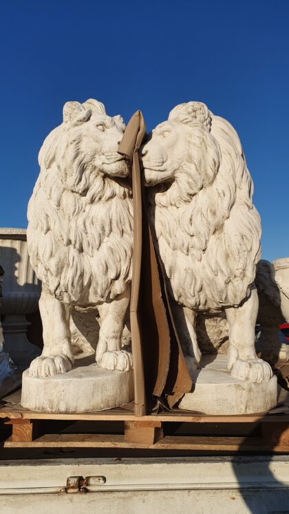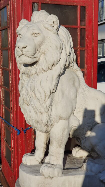 Stunning pair of lions - a real statement piece. Lions only; no plinths. Perfect for a statement piece in your garden or courtyard.