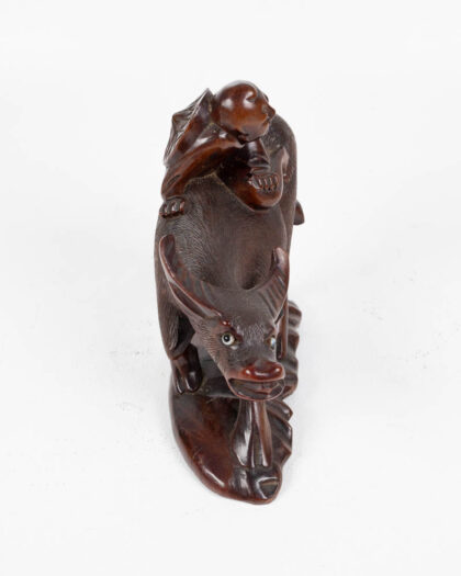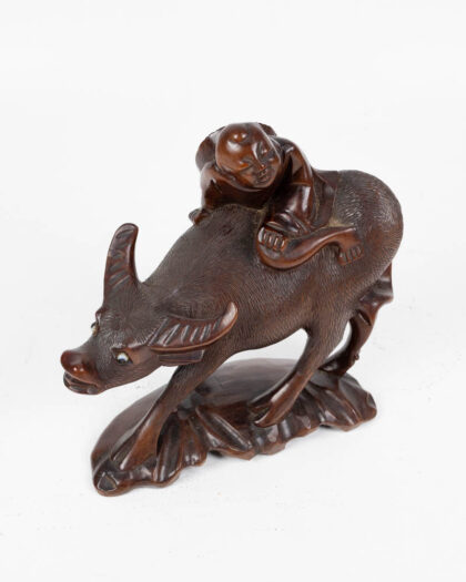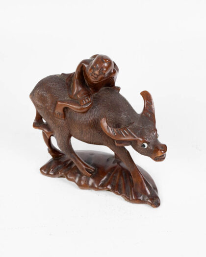 Pair of Vintage chinese Carved Wood Figures with Man on Ox