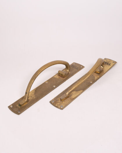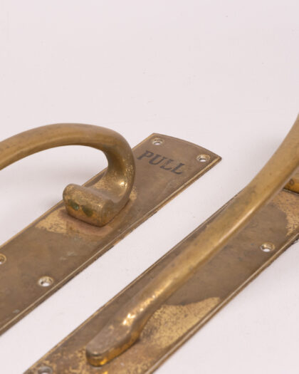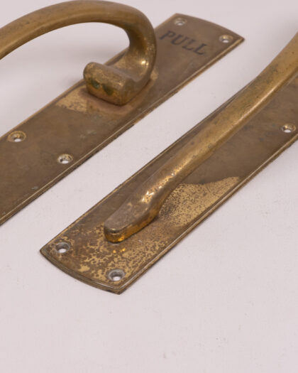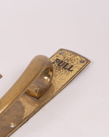 Pair of vintage-style brass door handles. Marked 'PULL'. Great for adding a touch of vintage to your home.