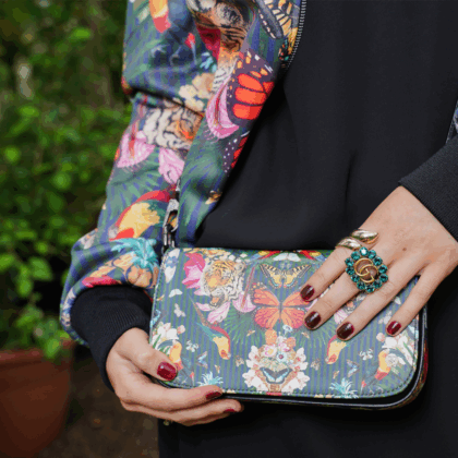 Your Paradise Lost "Night" Leather Cross Body Clutch is a thing of beauty, made from 100% Nappa Leather with a smooth black leather adjustable strap, which can also be removed to convert your bag into a clutch. Leopard print panels are featured at either end of the bag and add a touch of luxury to this exclusive accessory.