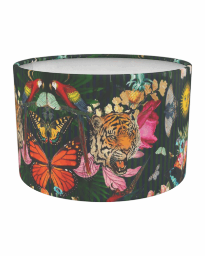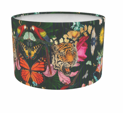 Dramatic mood lighting is the easiest way to create instant atmosphere in your home, but ramp up the theatrics further with our Paradise Lost Night Lampshade, which are made in the UK to order. Made using elegant, stylish and utterly sumptuous short piled Soft Velvet, the inner lining of the lampshades is fire rated for safety, and the fitting ring fits standard UK light fixtures for both ceiling and table/standing lamps. The USA table lampshade is for a harp finial fitting.