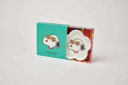 Add a touch of retro charm to your home with this Peanuts Flower Power trinket dish! This ceramic dish features a fun Snoopy design, complete with flower-power sunglasses. Ideal for storing jewellery, keys, or other small treasures. It's the perfect accessory for any Peanuts enthusiast, adding a fun and stylish touch to your home. Comes in a bright, colourful gift box, making it an ideal present for any occasion.