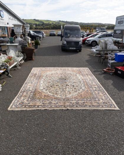 This exquisite Persian Kashan carpet, over 60 years old, features a unique cream ground and is meticulously handwoven. Measuring 306cm x 390cm, it embodies the rich tradition of Persian craftsmanship. Perfect for adding a touch of elegance and history to your living space, this carpet showcases the intricate artistry of Kashan weaving, making it a standout piece in any home.
