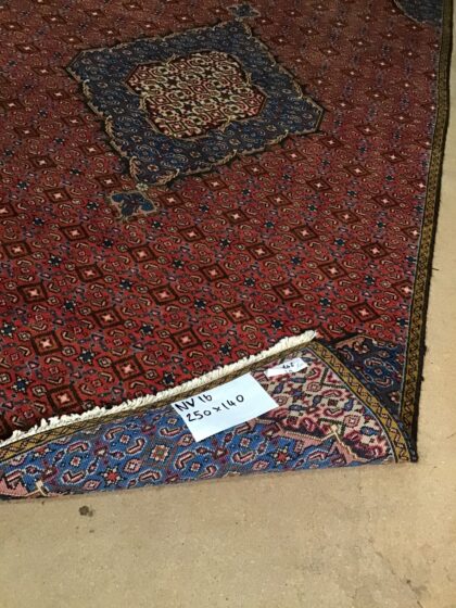 Very fine hand woven Kurdish Bihar full pile with terracotta field with ins of blue prize.