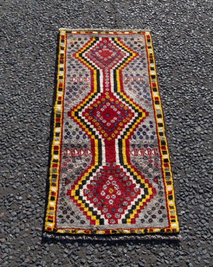 Discover the beauty of traditional craftsmanship with this exquisite Iranian Gabbeh tribal rug. Hand-woven with meticulous attention to detail, this rug features a rich blend of colours and patterns that reflect the cultural heritage of its origin. Measuring 158cm x 68cm, it is a perfect addition to any space, offering both warmth and elegance. This piece exemplifies the artisanal skill and timeless appeal of authentic Iranian textiles.