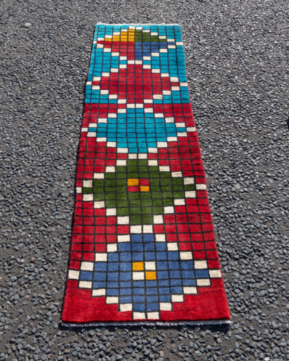 Discover the elegance of this handwoven Iranian Gabbeh rug, crafted with a full wool pile for a truly authentic touch. Measuring 64cm x 220cm, this bespoke piece embodies traditional craftsmanship, ideal for adding warmth and character to your space. Perfect for those who appreciate the intricacies of Persian design, this rug is a testament to timeless artistry.