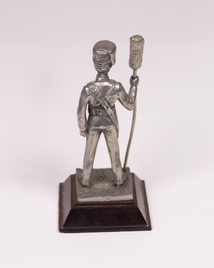 Pewter Royal Horse Artillery 1840 figurine on wooden base. Perfect for military history enthusiasts.