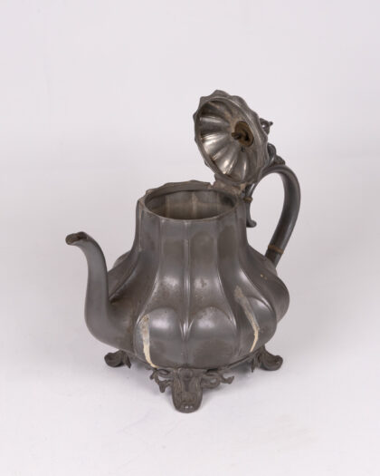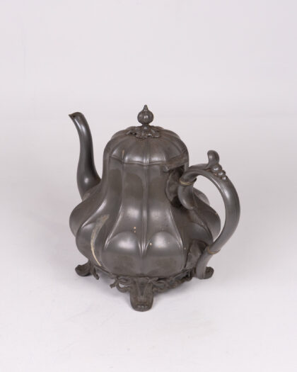 Vintage Philip Ashberry & Sons pewter teapot from Sheffield. Ornate design, footed base. A unique collectible for tea lovers and pewter enthusiasts.