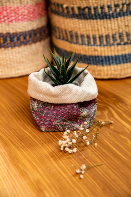 This Pink Floral x Wheat Handmade Fabric Pot made in collaboration with Kapdaa–The Offcut Company who take fabric offcuts and samples and turn them into wonderful new products! They work with huge brands in fashion and automotive industry… AND US!